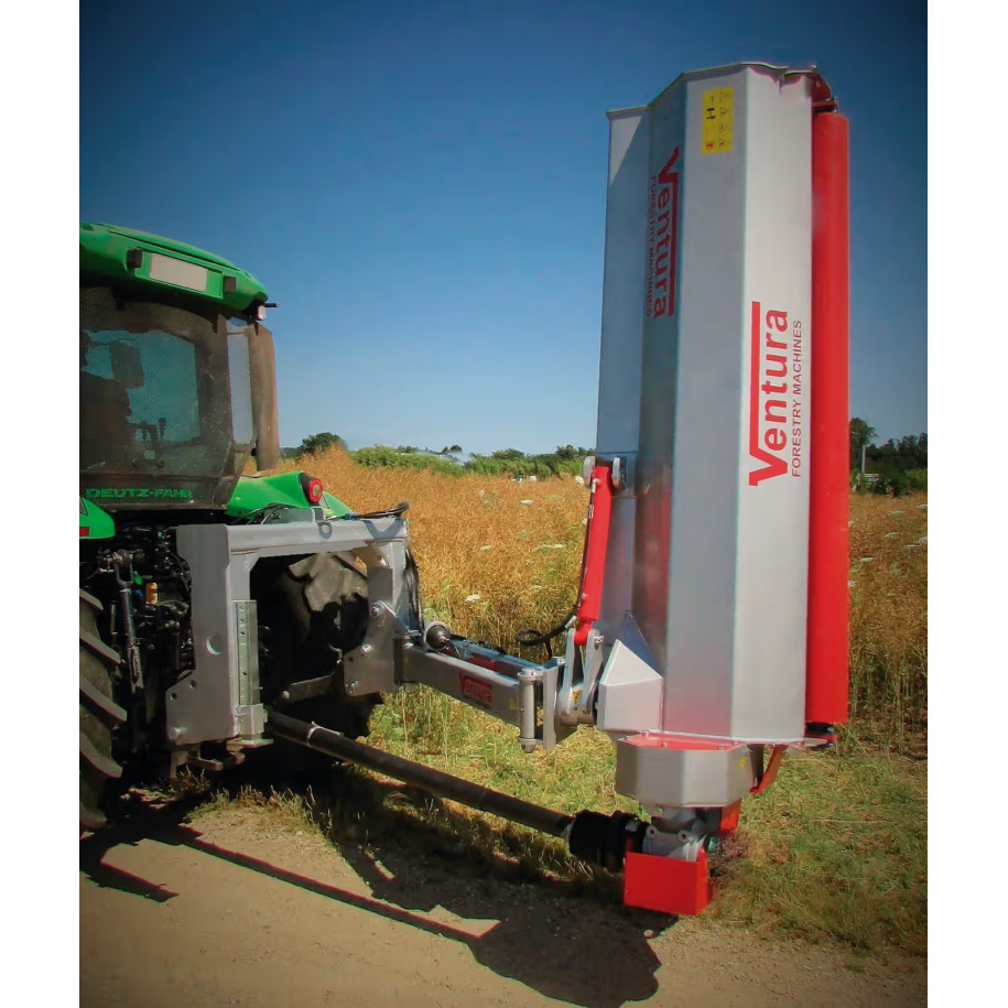 Ce modèle de broyeur à déplacement latéral est conçu pour satisfaire les travaux les plus exigeants grâce à sa conception beaucoup plus renforcée pour s'adapter aux tracteurs plus gros. Il permet de travailler avec l'ensemble de la machine en dehors du tracteur. Les caractéristiques techniques de cette machine la rende particulièrement adaptée aux travaux sur les fossés routiers, les bords des routes et dans les cas où le tracteur ne peut pas circuler dans la zone à désherber